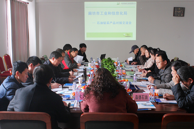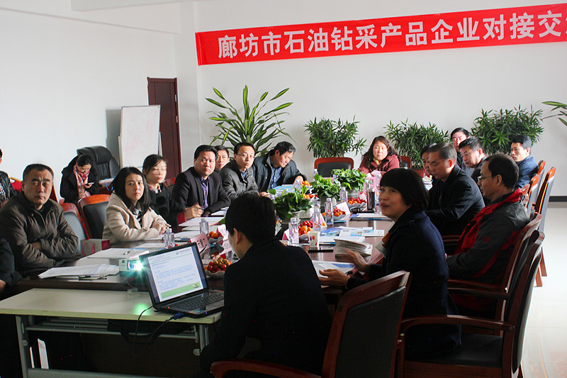 阳春三月,春暖花开,在这阳光明媚的日子里,廊坊市石油钻采产品对接交流会在我公司顺利召开,与会人员包括市、县工信局领导以及十多家石油相关产品企业。此次会议各企业介绍了各自的情况及产品,交流了相关技术知识。